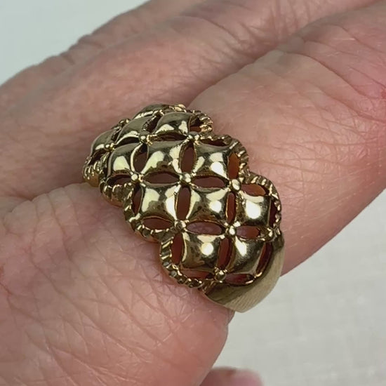Estate Bold 10K Yellow Gold Open-Work Lattice Design Ring, 11.5 mm, Size 7