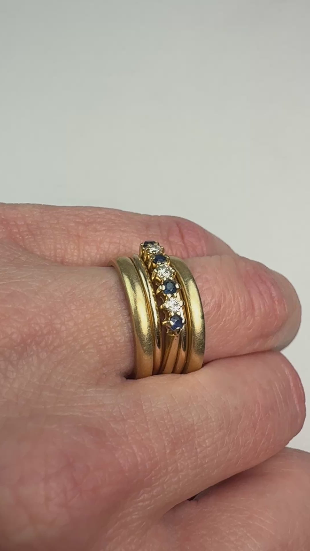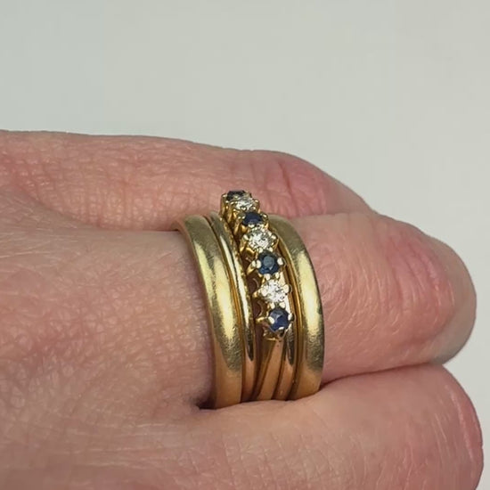 14K Vintage Sapphire and Diamond Yellow Gold Band 3.28mm, Size 6.5