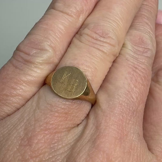 10K "KB" Yellow Solid Gold Vintage Signet Ring, Elegant Engraved Design Size 4.75