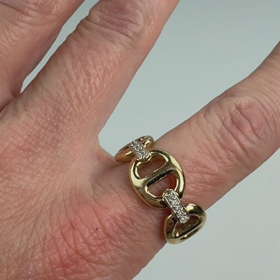 Estate 14K Bold Horse Bit/Mariner Link with diamonds 10.11mm, Size 9