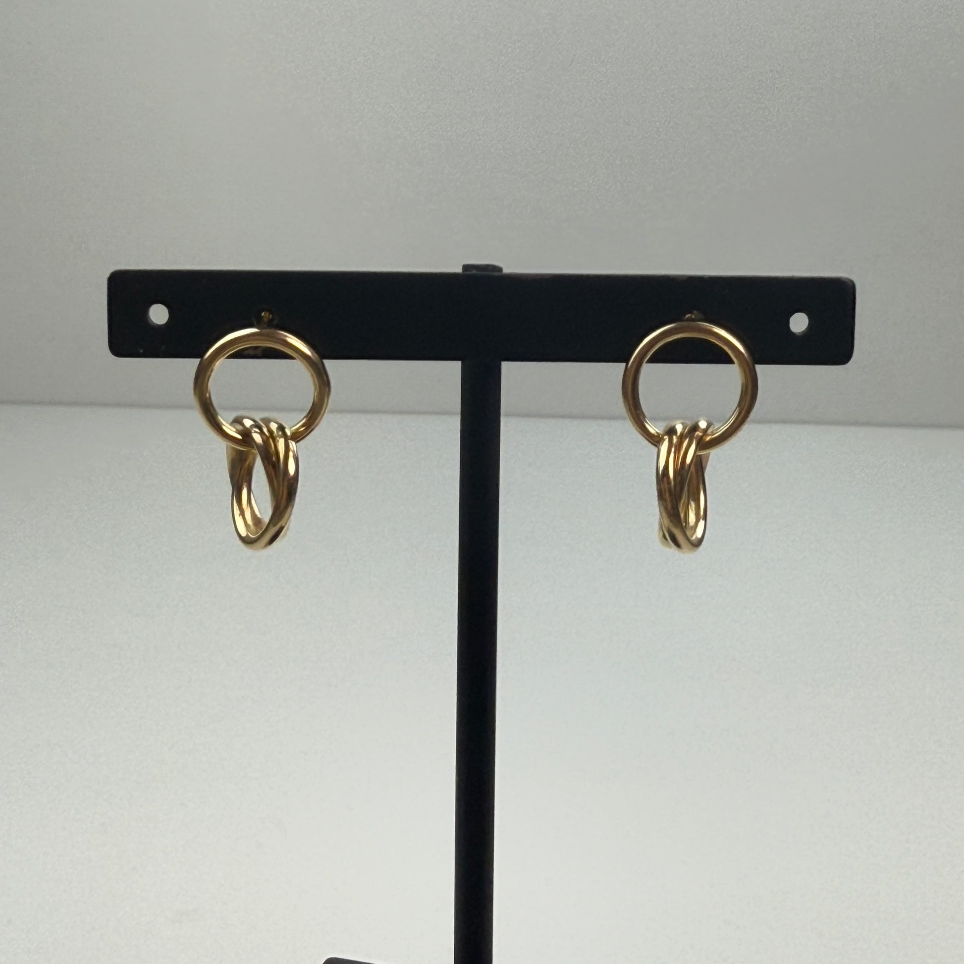 14K Interlocking Hoop Dangle Earrings 3.34g .84" Drop
