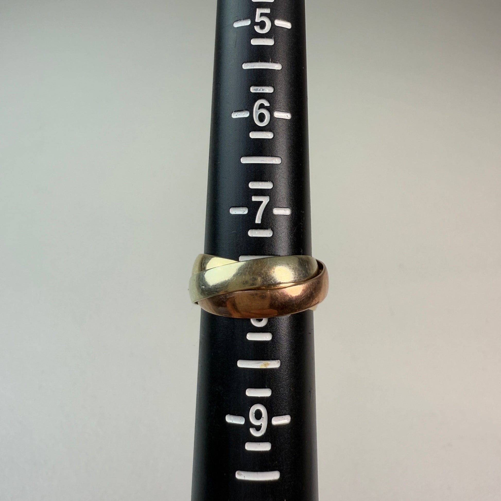 Vintage 9K Triple Rolling Ring Yellow, White, and Rose Gold Size 7.75