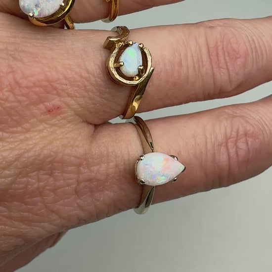 Vintage 10K Gold Opal Mid-Century Ring, Size 6.25