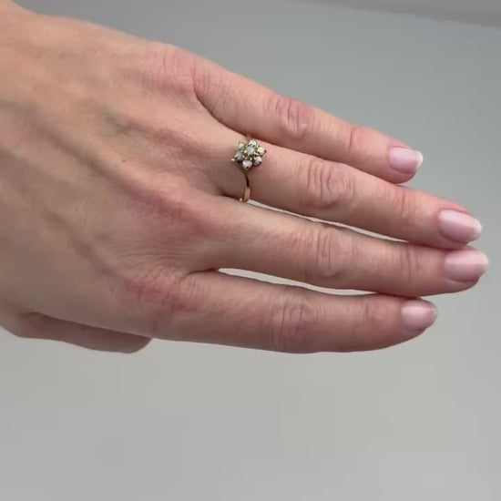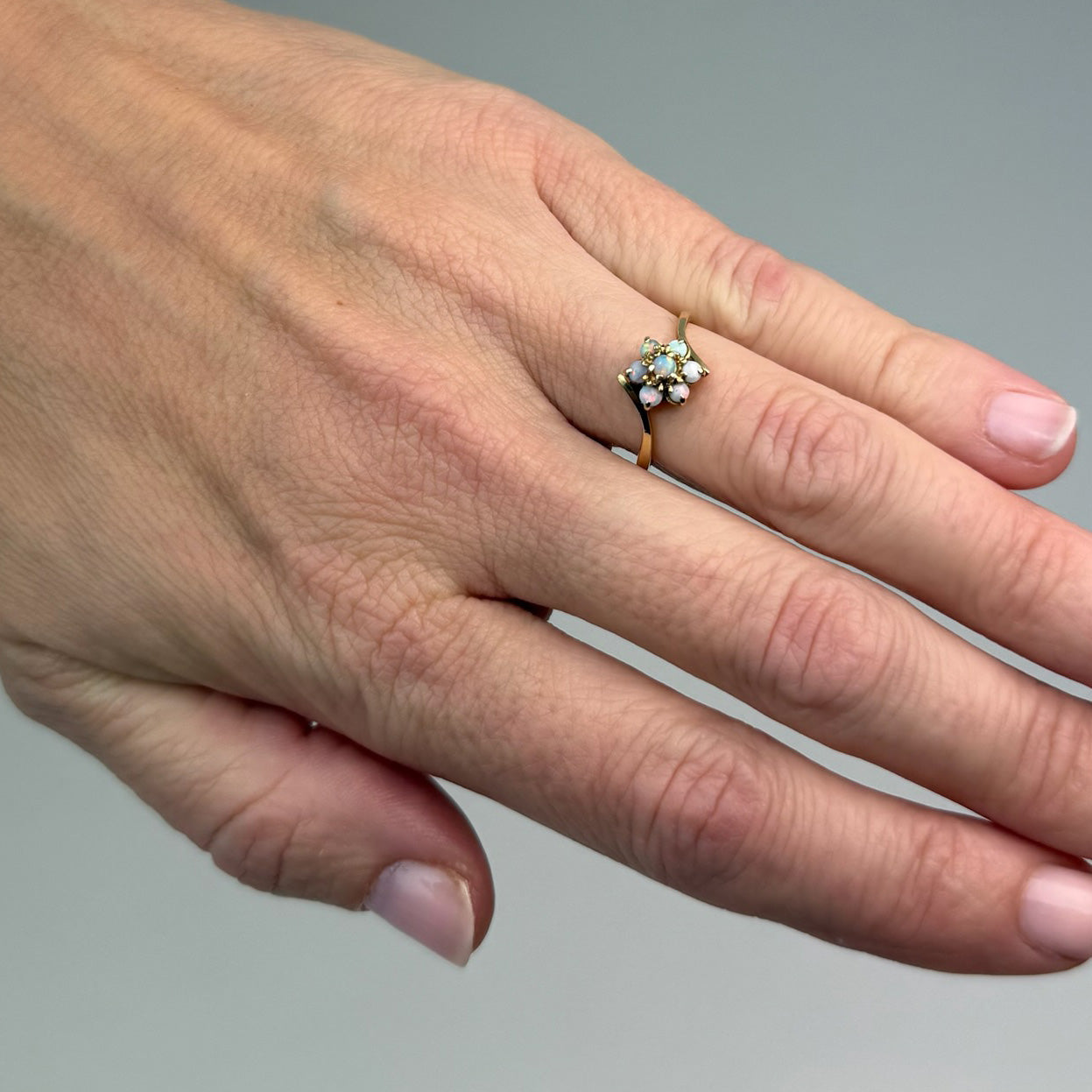 14K Vintage Opal Cluster Ring Yellow Gold, Size 4.5