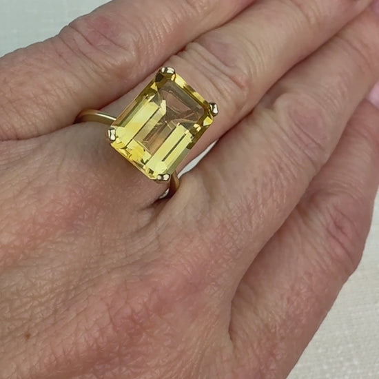 Classic 10K Solid Yellow Gold Emerald-Cut Citrine Solitaire Ring, Size 7.75