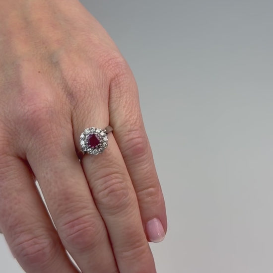 18K White Gold Ruby and Natural Diamond Cluster Ring Size 6