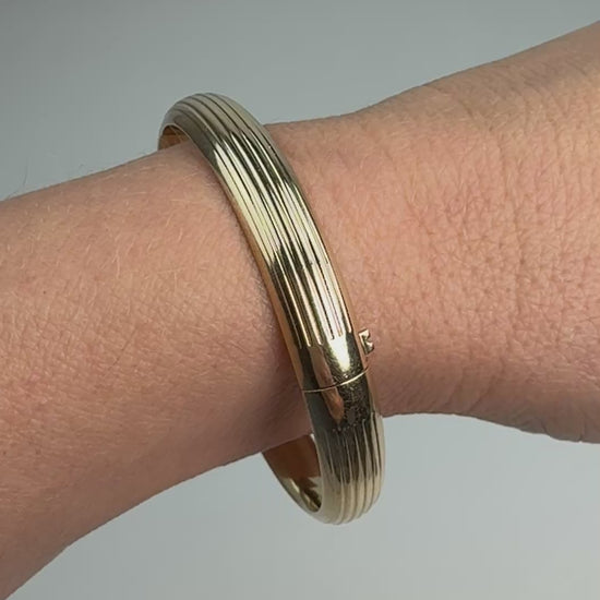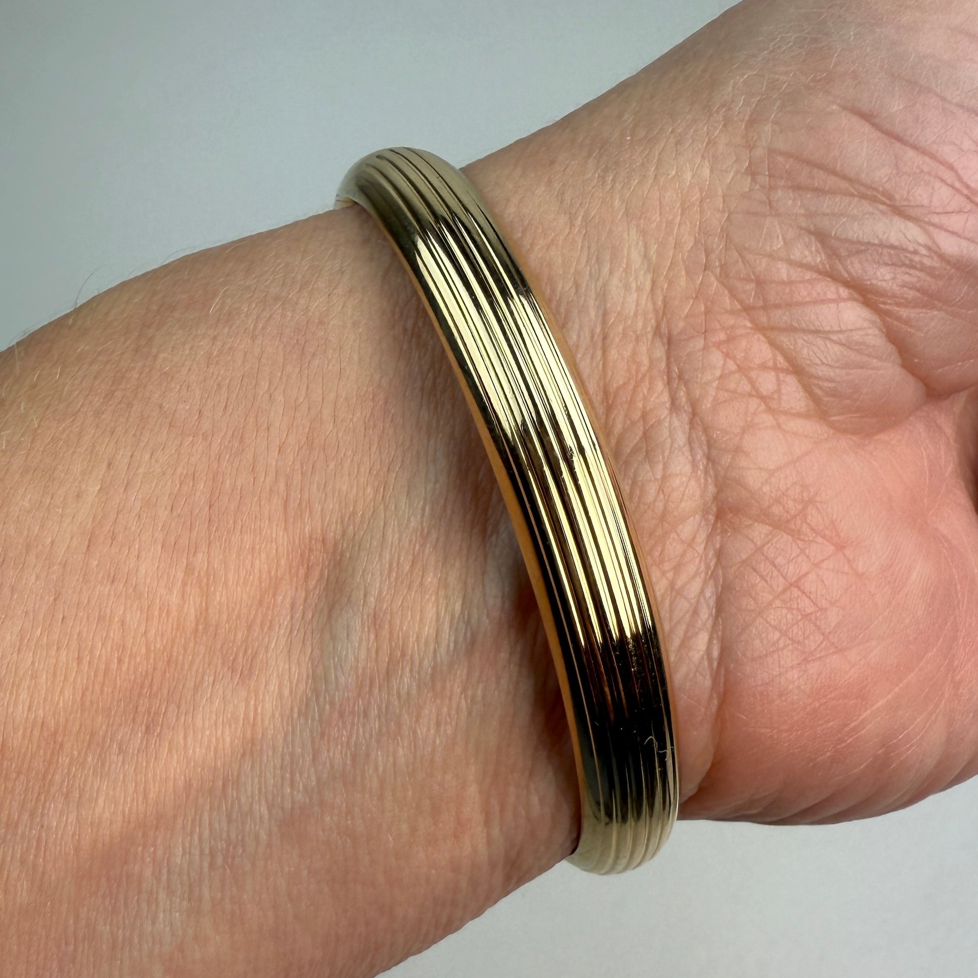 Estate 6.75" Grooved Hinged Bangle Bracelet – 14K Yellow Gold