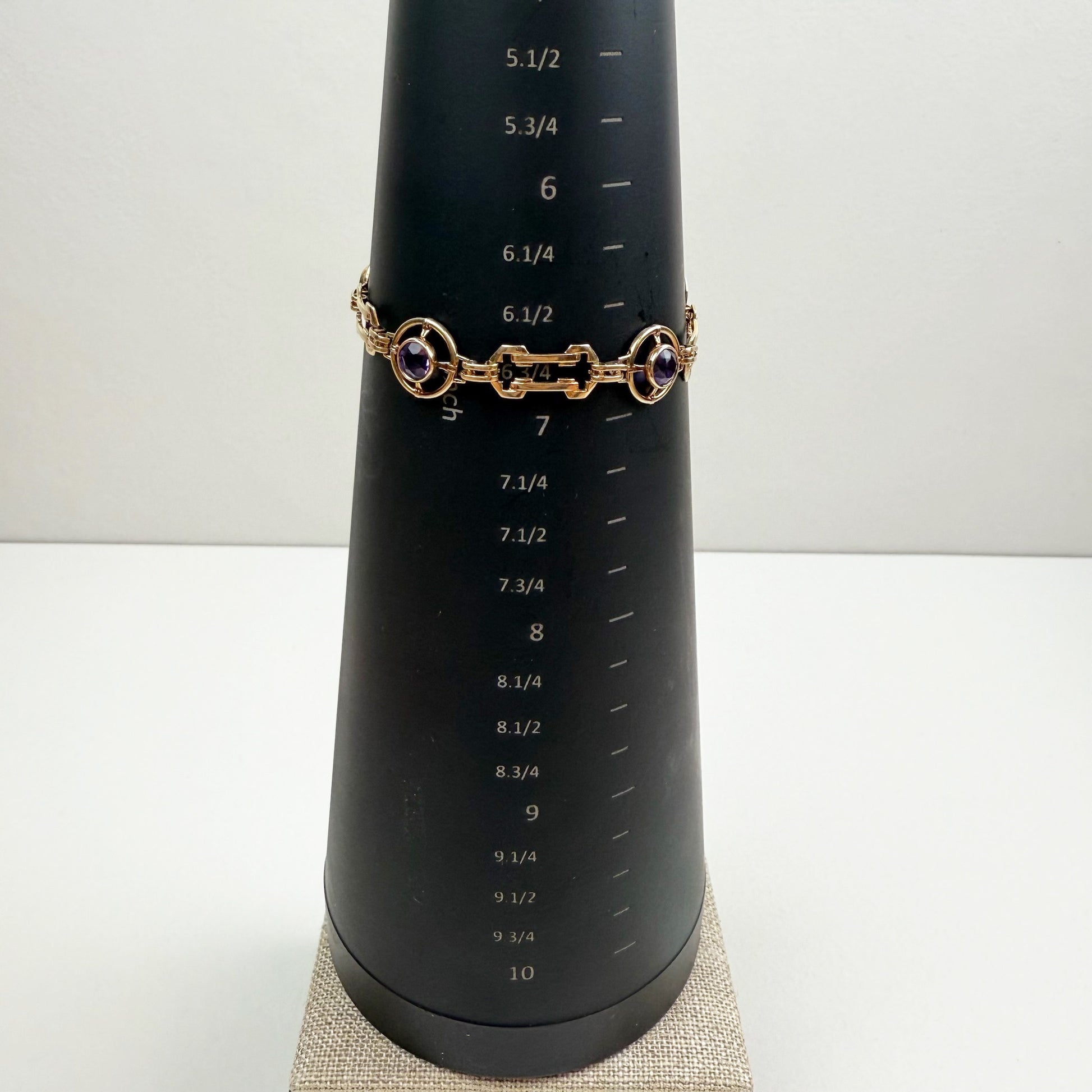 Estate 6.75" Vintage Amethyst Architectural Link Bracelet β 10K Yellow Gold