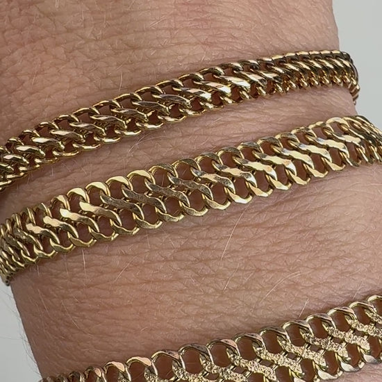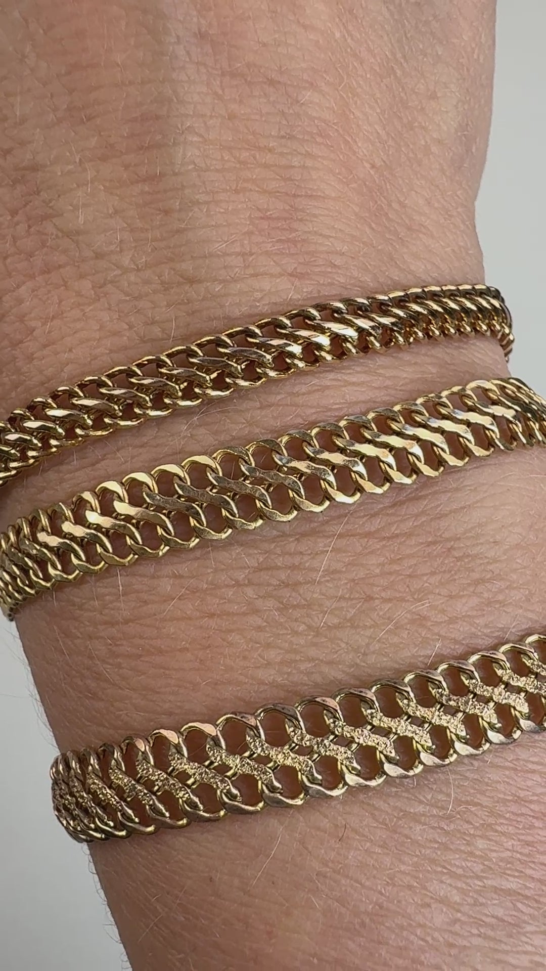 This beautiful vintage 14K yellow gold bracelet features a classic Italian-made twisted curb link design. The subtle spiral in each link adds movement and dimension while still laying smoothly on the wrist. It has that perfect balance of weight and flexibility Italian gold is known for, with a rich, buttery tone and a soft, elegant shine. Timeless and versatile, it wears beautifully on its own or layered with other gold favorites. A wonderful everyday piece with enough presence to feel special and a lovely example of quality vintage craftsmanship.