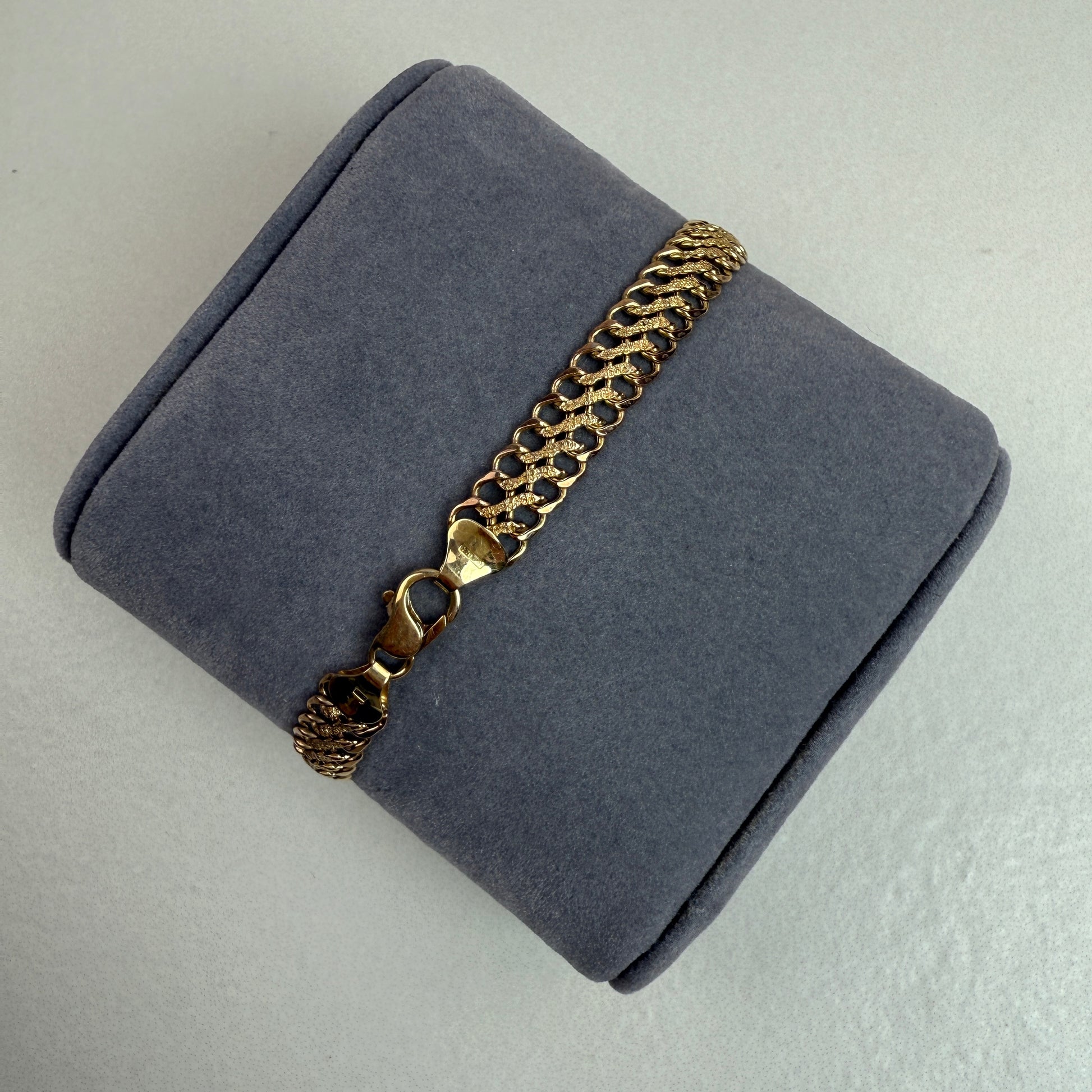 7" Vintage 14K Italian 7.3mm Textured Hollow Curb Bracelet