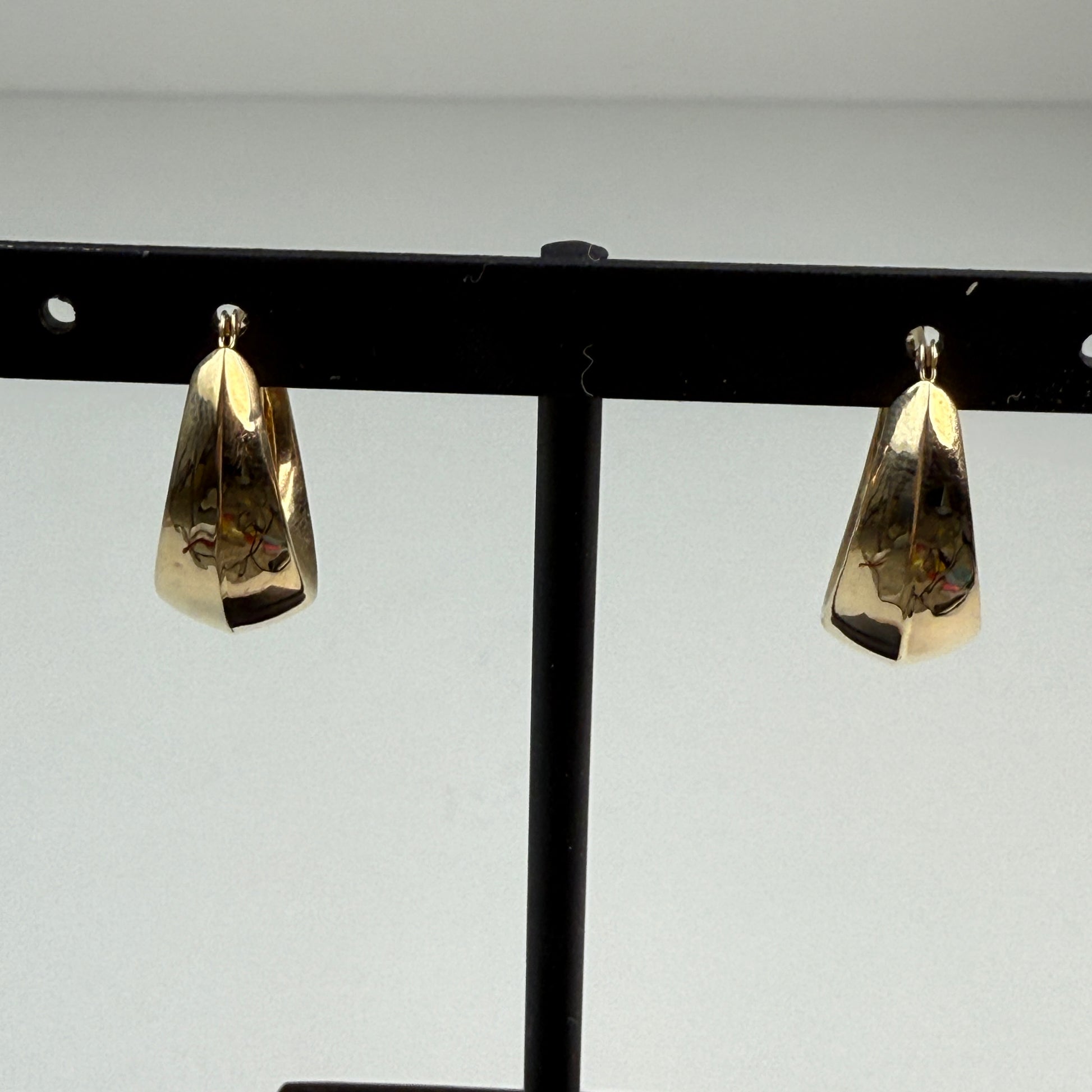 Estate 14K Yellow Gold Tapered Oval Hoop Earrings 9.27 mm wide, 19 mm tall, 1.54 g