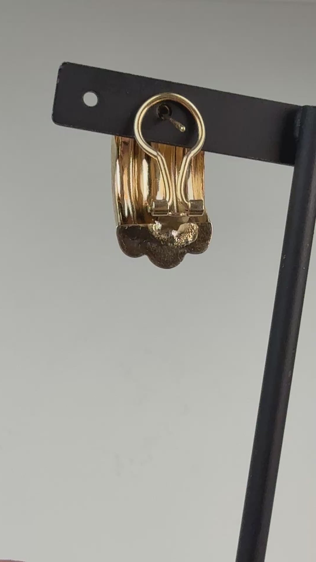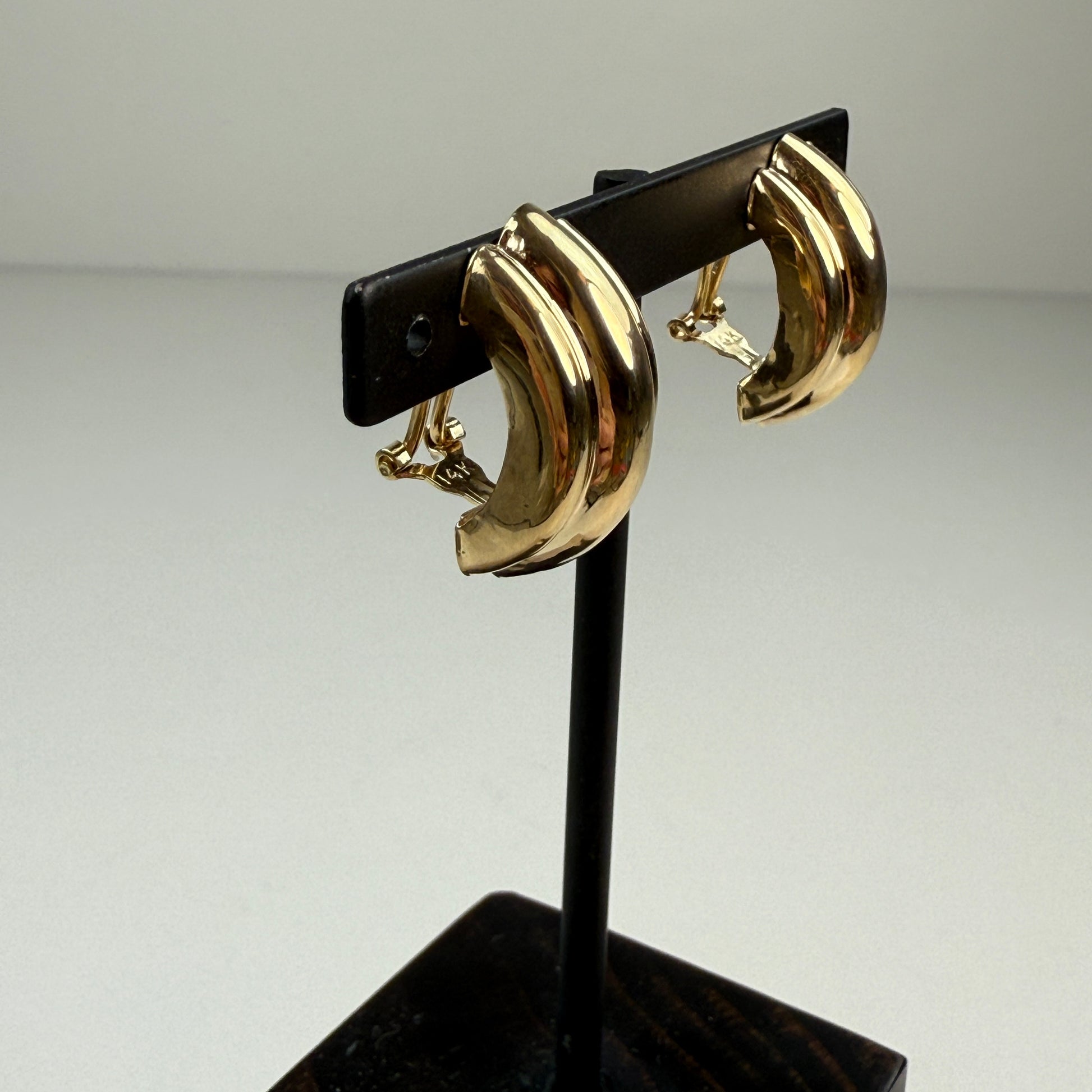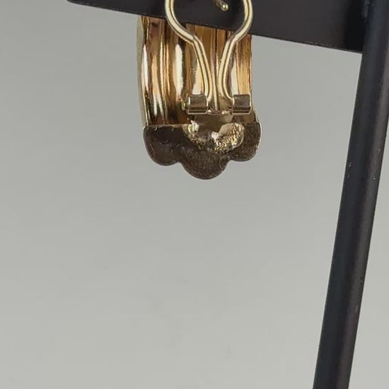 Estate Classic Polished Ribbed Half-Hoop Earrings – 14K Yellow Gold