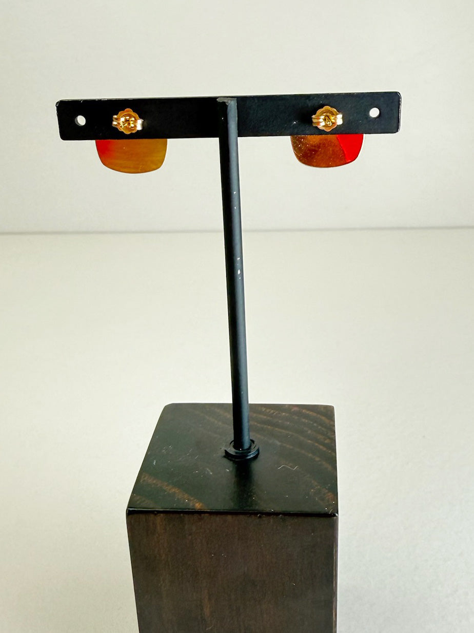 Estate Vintage Faceted Square Earrings – 14K Yellow Gold